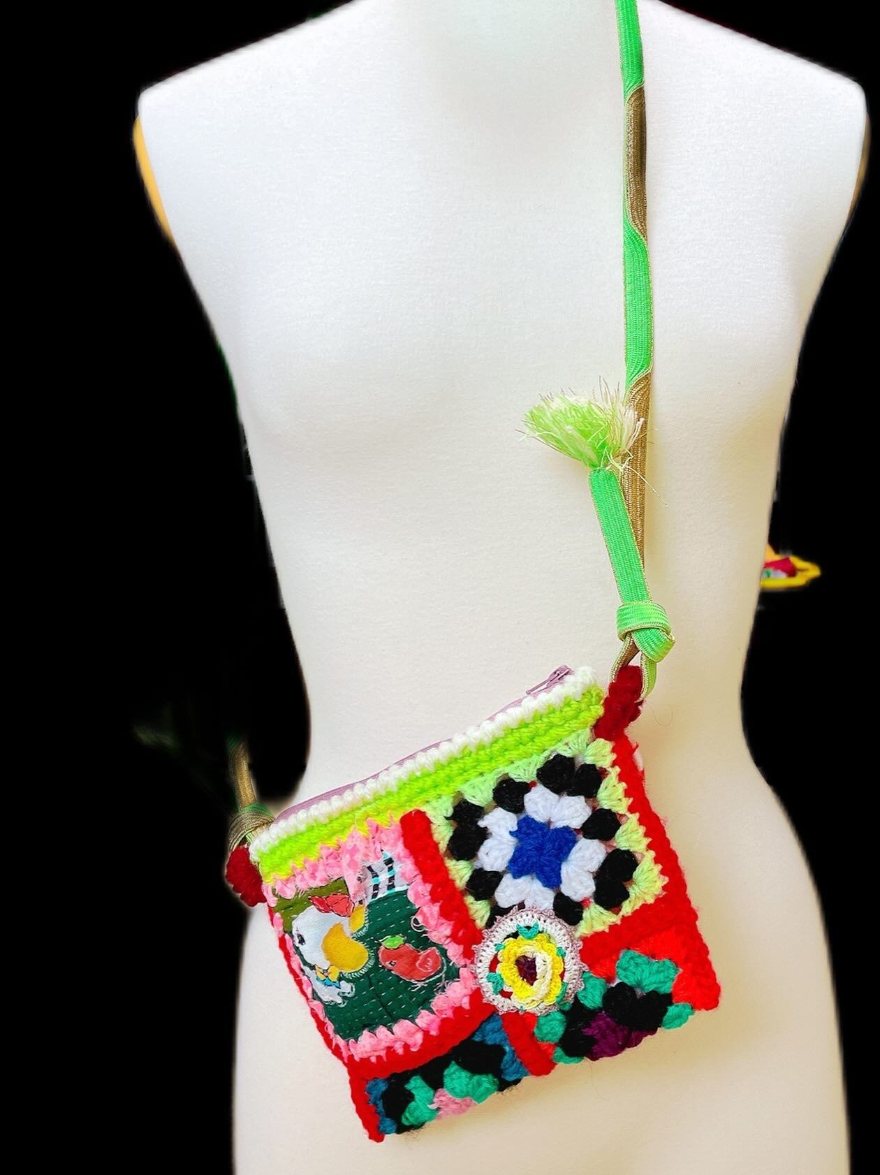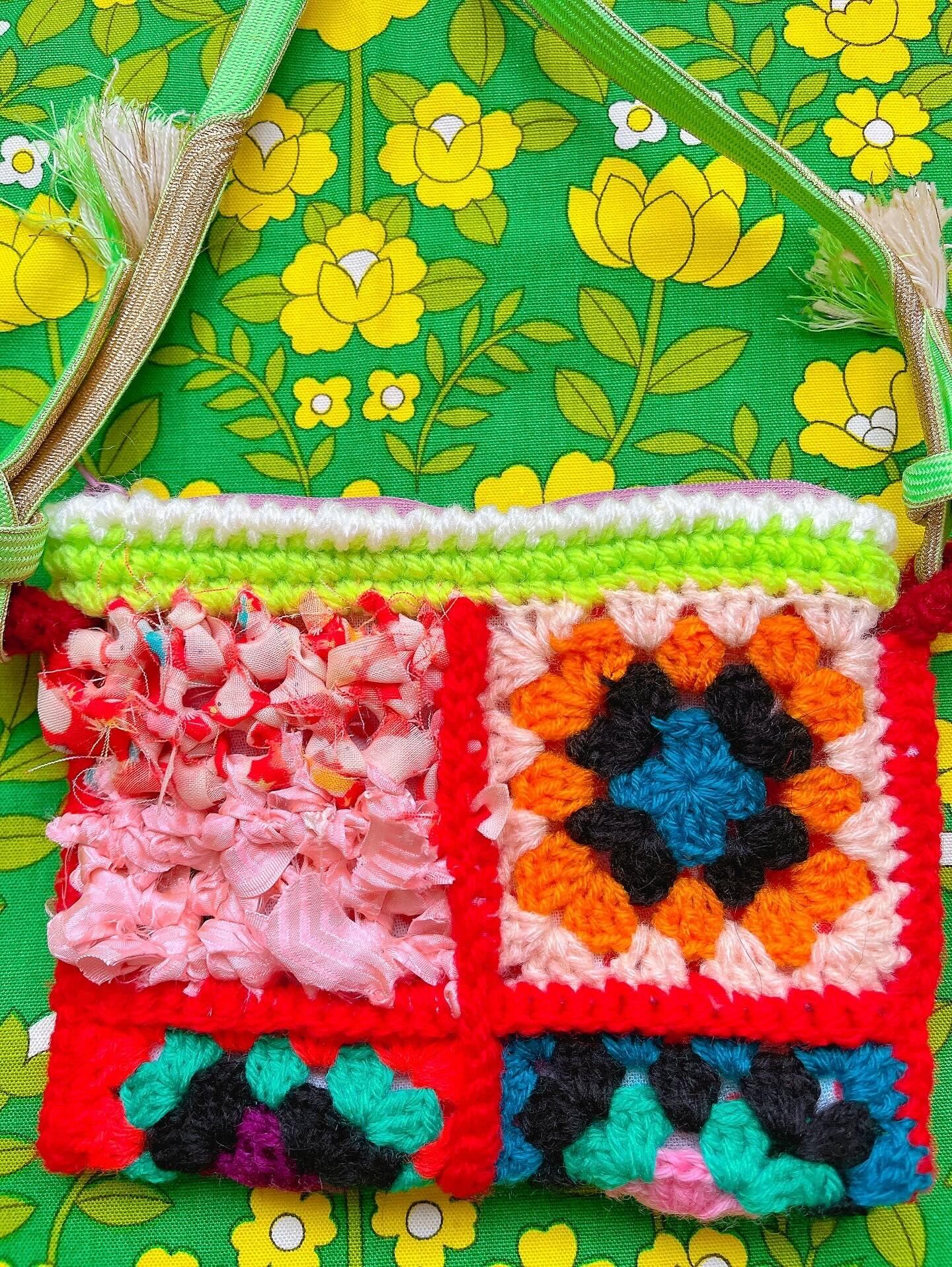 ヴィンテージ着物の古布や帯締めが使ってあります。