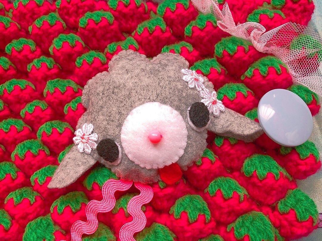 いちご編みのボリュームが可愛いです。内布はチェック。