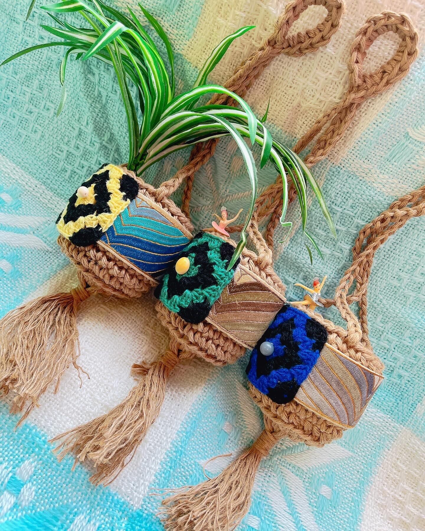 テープ青系、グラニースクエアのモチーフ卵色