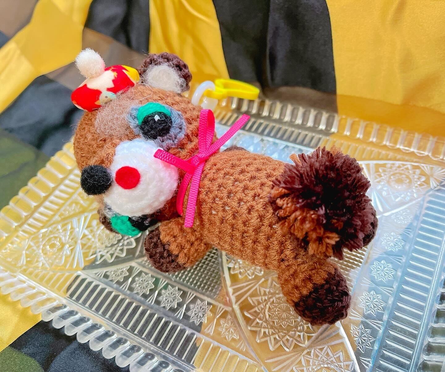 片目を開けてこちらを盗み見しているたぬきちゃんのチャームです。